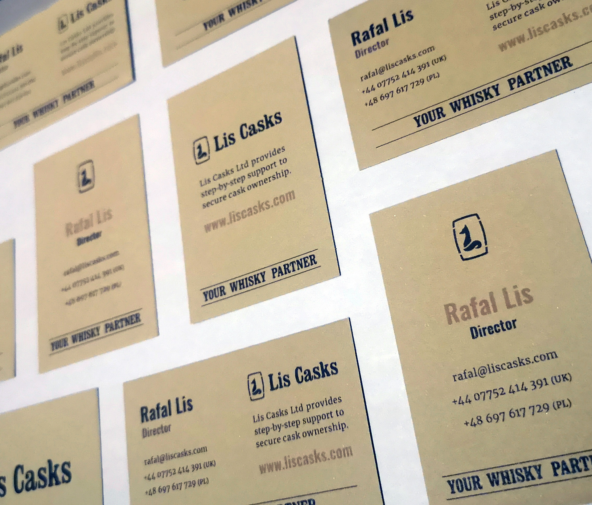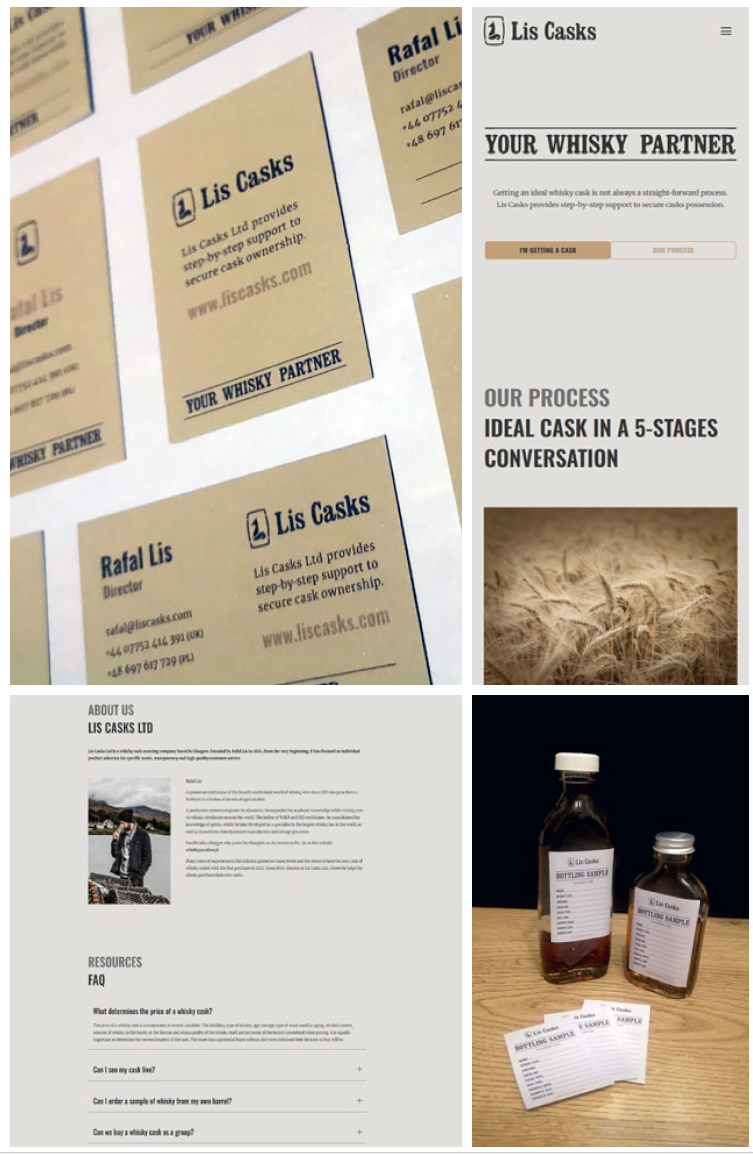 A complete visual identity developed from scratch for a small, independent whisky brokerage. The brand focuses on trust, transparency and long-term relationships rather than bold promises or investment-led messaging. The result positions Lis Casks as a knowledgeable guide for enthusiasts taking their next step beyond collecting bottles, rooted in a dusty Islay warehouse rather than a marble London office.